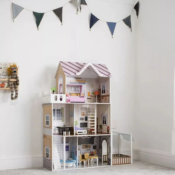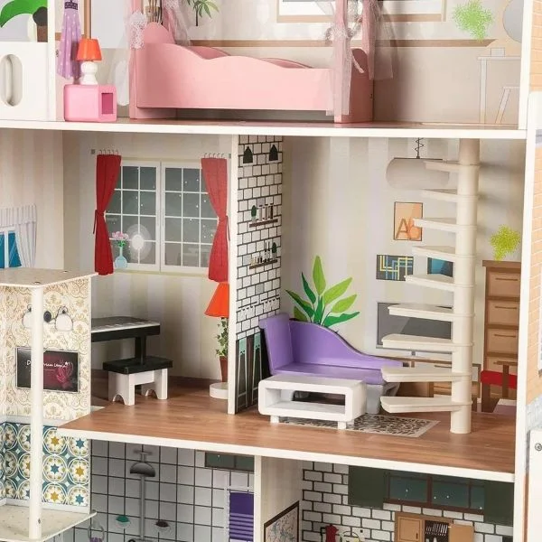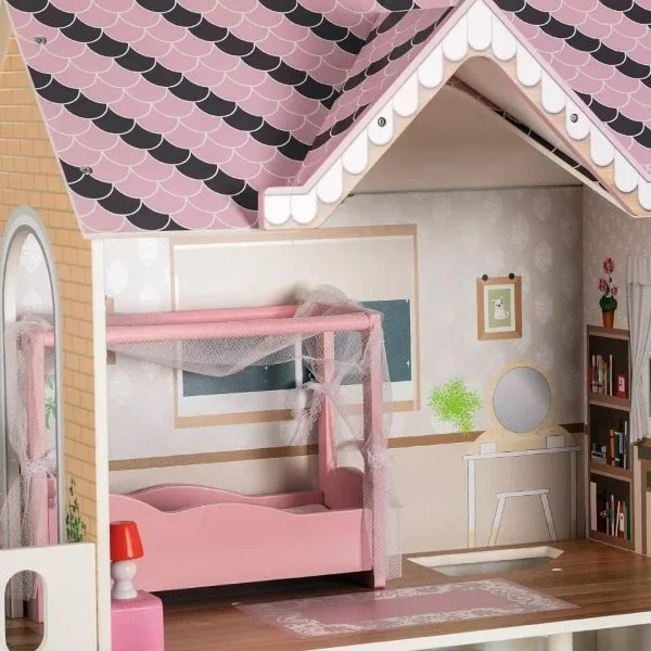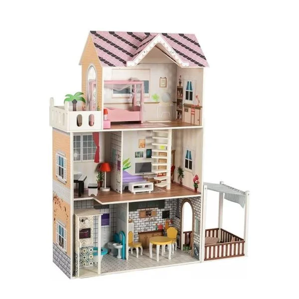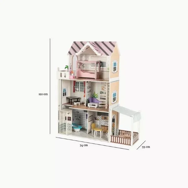 - With Balcony Patio and Small roleplay lift Bedroom Doll House, Wooden Play Mansion with Accessories