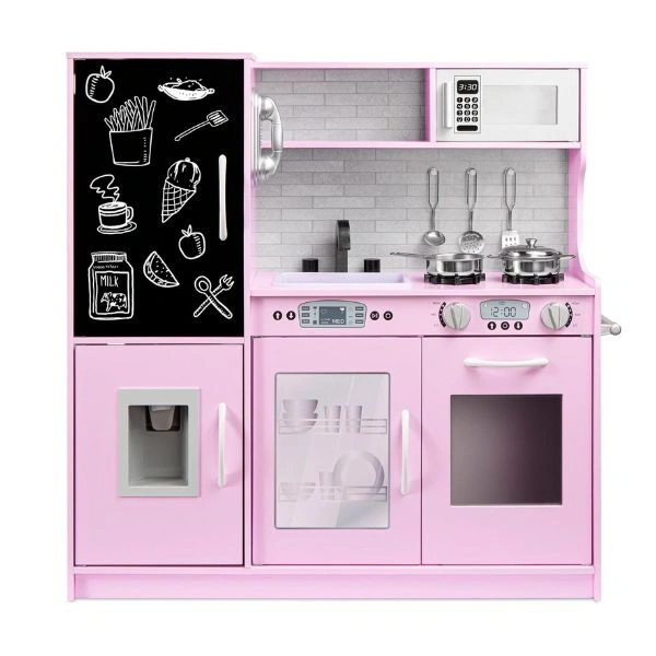 AL ARQAM All-In-1 Kids Kitchen Playset – Realistic Pink Playset with Telephone, Oven, Microwave, Sink & Utensils, 65x30x95cm, Ages 3+