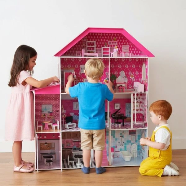 Realistic accessories including lamps, plants, art, and tech devices for imaginative play