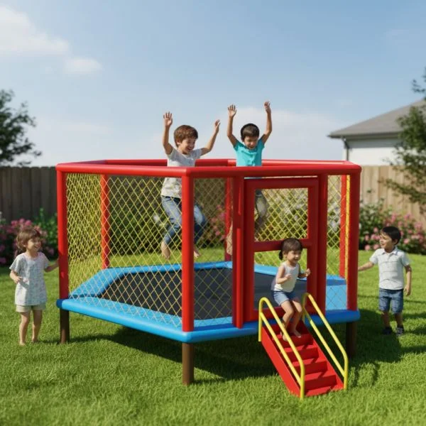 Extra Safety Net: Fully enclosed safety net keeps kids safe inside the trampoline, preventing falls and accidents.