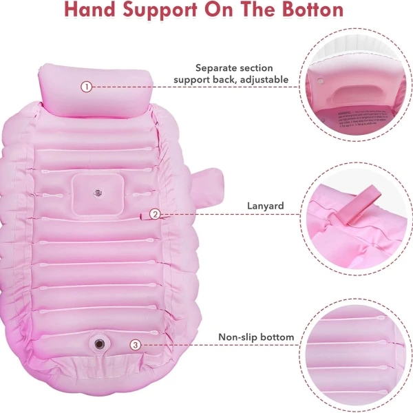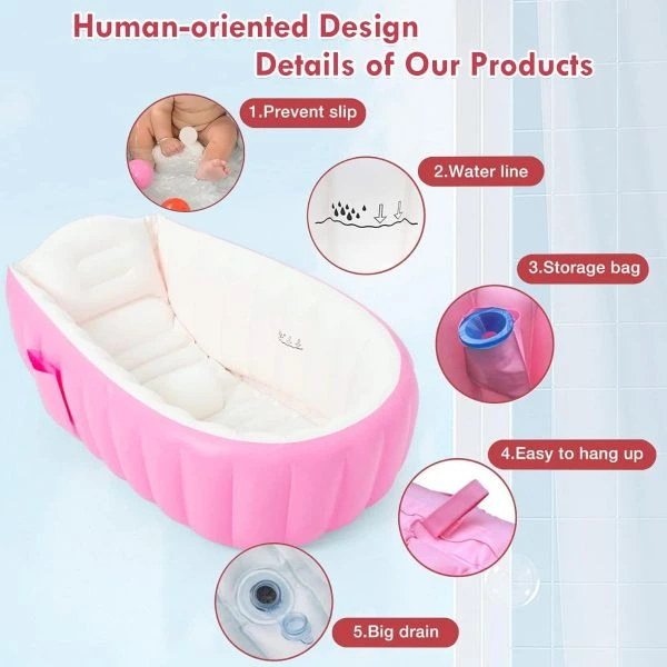 Lightweight and foldable, it inflates quickly and stores easily, making it an ideal solution for parents who need a compact bath tub for daily use, vacations, or outdoor trips. It can also be used as a mini water play pool for supervised fun.