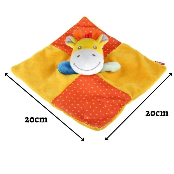 The Funmuch Baby Teether Giraffe Towel is a gentle comfort companion designed to soothe and engage newborns and infants. Combining a soft security blanket with a built-in teething toy, this adorable giraffe lovey helps calm babies while supporting sensory development. The plush towel provides cozy comfort for cuddling, while the attached teether helps relieve sore gums during the teething stage. Lightweight and easy for little hands to hold, it is perfect for sleep time, stroller rides, and everyday soothing. Made from baby-friendly, washable materials, this comfort lovey is an ideal addition to your baby’s daily essentials and a thoughtful gift for new parents.