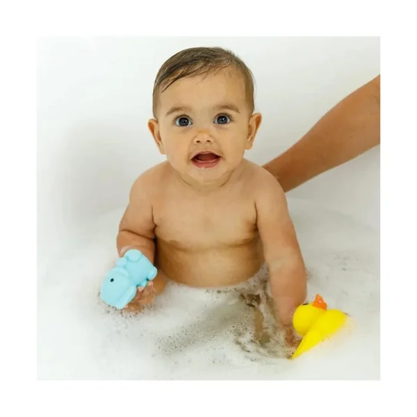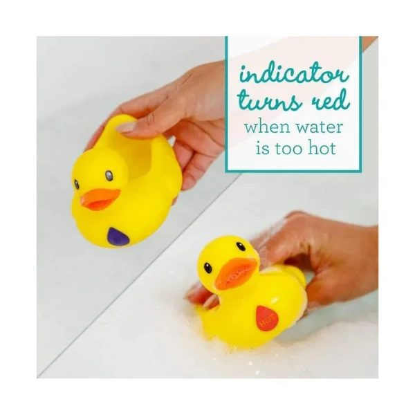 Place this temperature monitoring duck and elephant pal in baby's bath water as you fill up the tub. The duck's temperature water drop indicator will turn red when the water gets too hot, making it easy to detect excessive heat and adjust the water temperature accordingly. Little ones will love pretend play with their floating yellow duck and removable elephant pal. Simplify bath time with these safe, yet fun pals by Infantino! EN certified for safety, non-toxic vinyl, mildew-resistant. Perfect for UAE bath time fun—ships in 2 days via YallaBuyIt.ae.
