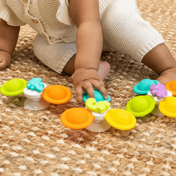 Roar into bath time with the Infantino Silicone Bath Pop Spinners—3 colorful dinosaur spinners that stick to tub walls with suction cups and spin with a gentle push for 6 months+. Made from 100% food-grade silicone, they’re safe for teething, mold-resistant, and quick-drying. Encourages hand-eye coordination and sensory exploration. EN certified for safety, dishwasher-safe. Perfect for UAE splashy fun. Ships in 2 days via YallaBuyIt.ae.