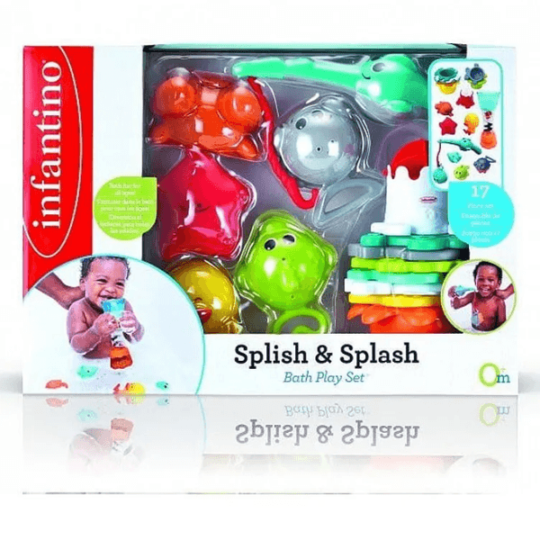 Splish, splash—have fun taking a bath with the Infantino Splish & Splash Bath Play Set! This 17-piece sea-life themed set for 6 months+ includes 4 engaging activities: play fishing set (magnetic rod + 3 fish), stacking cups (numbers 1-8 with perforated bottoms for water dribble), bath squirters, and a fill & spin water wand. Introduces numbers, stacking, hand-eye coordination, and gross motor skill development. BPA-free plastic is safe and durable; easy to clean. EN certified for safety. Perfect for UAE splashy learning. Ships in 2 days via YallaBuyIt.ae.