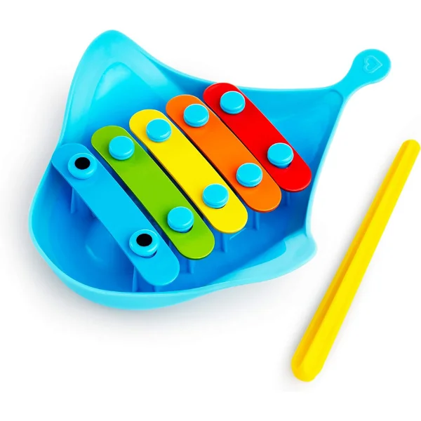 Tap into bath time fun with the Munchkin Dingray Musical Bath Toy (EU)—a floating stingray-shaped xylophone for 12 months+ with 5 colorful, rust-resistant metal keys and included mallet to play simple songs and make sounds. Designed for learning through music, it floats on water or works on dry land, promoting hand-eye coordination and gross motor skills. Made of soft, durable material that's BPA-free and safe for teething. EN certified for safety, easy to clean and dishwasher-safe. Perfect for UAE splashy, musical play. Ships in 2 days via YallaBuyIt.ae. Key Specifications: