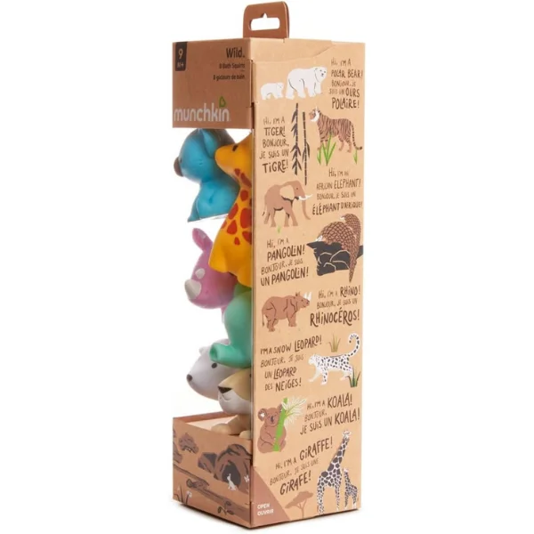 Go wild for bath time with the Munchkin Wild™ Bath Squirts (Pack of 8)—soft, floating squirters featuring endangered species like African elephant, giraffe, koala, pangolin, snow leopard, tiger, rhino, and polar bear for 9 months+. Fill and squeeze to squirt water, developing fine motor skills and encouraging pretend play while learning about wildlife conservation (supports International Fund for Animal Welfare). BPA-free, phthalate-free, PVC-free, latex-free rubber is safe for teething and dishwasher-safe. EN certified for safety, sized for small hands. Perfect for UAE splashy fun. Ships in 2 days via YallaBuyIt.ae. Key Specifications: