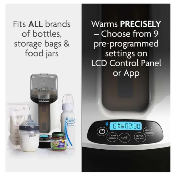 Warm breastmilk and formula safely with the Baby Brezza Smart Baby Bottle Warmer in white—the only brand with dual modes for nutrient preservation in breastmilk (steady warm water bath) and quick formula heating (steam). Universal fit for all bottles, milk bags, and food jars, it warms in as little as 2 minutes with 9 pre-programmed settings based on oz, starting temp, and material. Bluetooth app alerts you when ready, with auto shut-off for safety. BPA-free, EN certified, and compact (16.7x16x29.5 cm), it fits UAE countertops. Perfect for combo feeding from 0 months+. Ships in 2 days via YallaBuyIt.ae. Key Specifications: