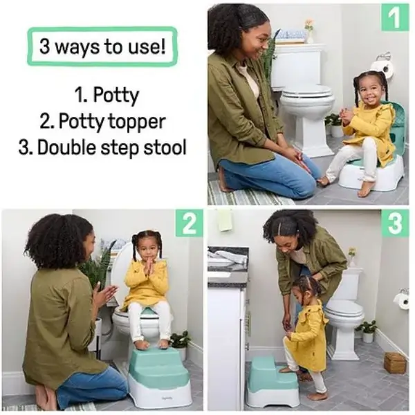 3-in-1 design: potty chair, toilet trainer, and step stool