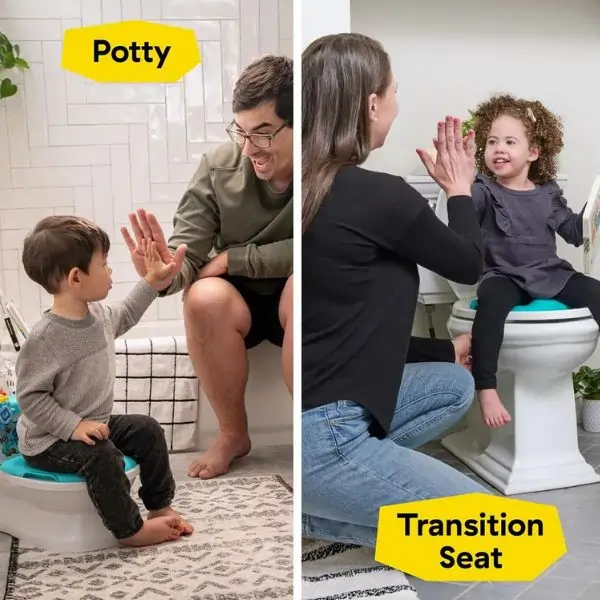 The Summer Infant Geared for Success 2-in-1 Potty Training System makes toilet training a fun and rewarding experience for your little one. Featuring real flush sounds, this colorful potty helps toddlers feel grown-up and confident. The detachable potty ring fits most adult toilets for an easy transition, while the removable bowl allows for quick and hygienic cleaning. Designed for children 18 months and older, this potty combines practicality with playful design to support every step of your child’s potty training journey.