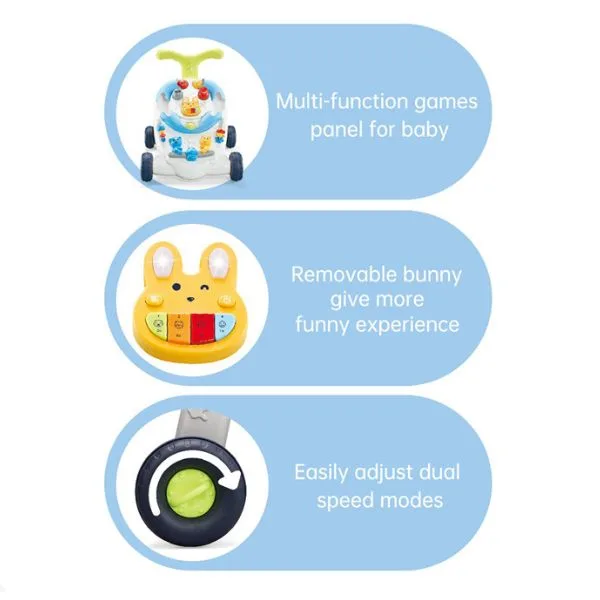 youleen Multifunctional Radish Baby Walker is an interactive push walker designed to support babies and toddlers during their early walking stages. Featuring a playful radish-themed design, this walker combines mobility support with engaging activity toys to promote learning through play. The sturdy push handle helps babies build balance and confidence while learning to walk. Built-in activity features encourage sensory exploration, hand-eye coordination, and cognitive development, keeping little ones entertained while strengthening motor skills. Suitable for babies aged 9+Months, this multifunctional walker is ideal for early development, active play, and confidence-building movement.