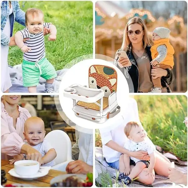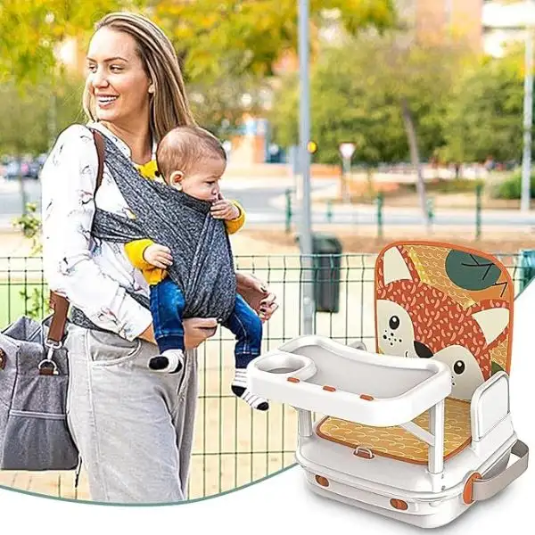 The Yaya Duck Babylove Folding Booster Dining Chair is a practical and compact feeding solution designed for babies and toddlers. This portable baby feeding seat easily attaches to dining chairs, allowing your little one to sit comfortably at the table during mealtime. Featuring a built-in safety harness, it helps keep your child secure while eating. The removable tray makes feeding convenient and easy to clean, while the foldable design allows effortless storage and travel use. Ideal for home, family visits, and outings, this booster chair combines safety, comfort, and portability. Perfect for growing toddlers transitioning to table dining.