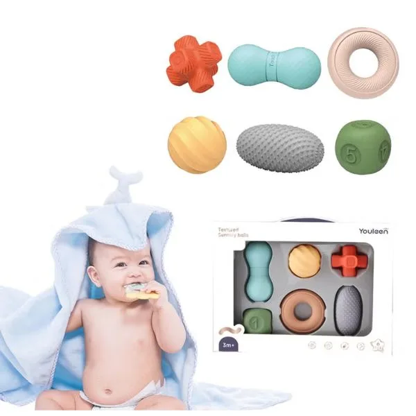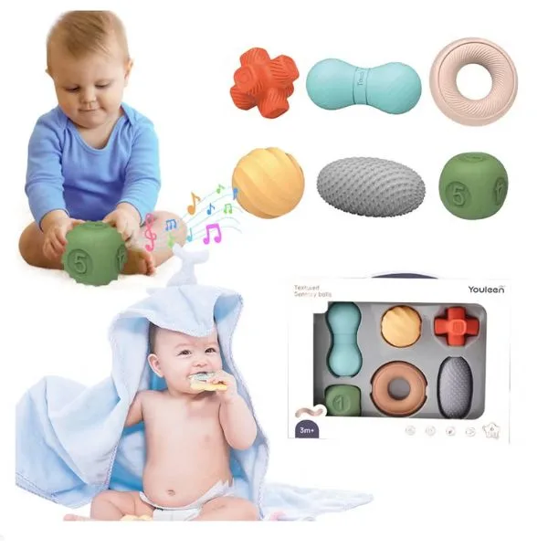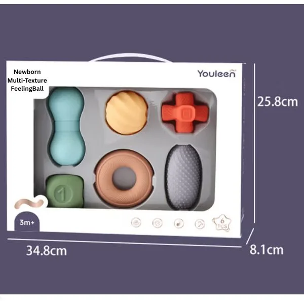 Youleen Newborn Multi-Texture Sensory Ball is a soft and engaging developmental toy designed to stimulate babies’ senses through touch, movement, and exploration. Featuring multiple textures and easy-to-grip surfaces, this Montessori-inspired toy encourages tactile discovery and early sensory learning. Perfect for infants aged 3 months and above, the lightweight design helps babies practice grasping, rolling, and hand coordination while promoting fine motor skill development. The soft material ensures safe play for little hands and curious explorers. Ideal for early learning and sensory development, this touch-and-feel toy supports cognitive growth through interactive play.