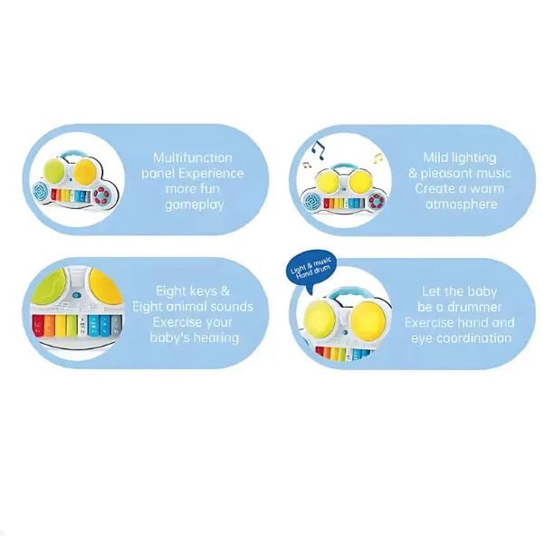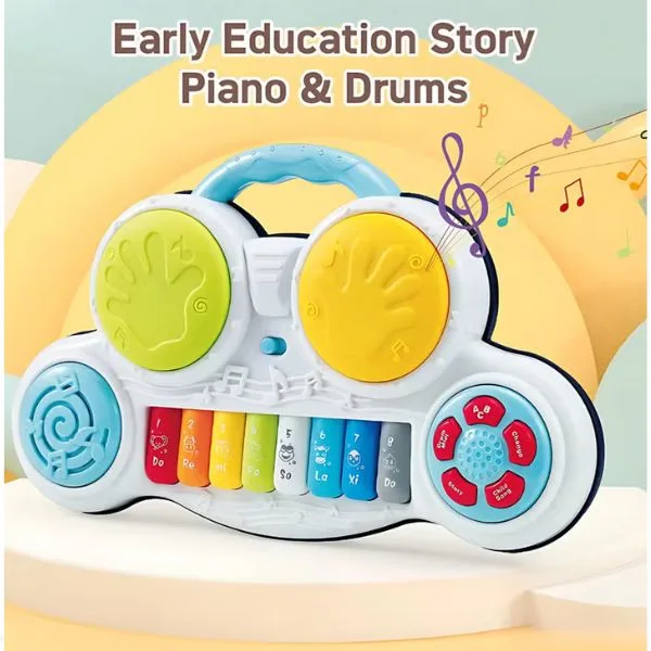 The Youleen Early Education Story Piano & Drums is a multifunctional 2-in-1 musical learning toy designed to introduce babies and toddlers to rhythm, music, and early education through interactive play. Featuring an engaging forest-themed design, this toy combines a piano keyboard and drum play system to create a complete musical experience. The 8-key keyboard produces melodies, beats, and sound effects while colorful lights enhance sensory stimulation. The storytelling and music functions encourage creativity, listening skills, and hand-eye coordination, helping children develop cognitive and motor skills in a fun environment. Perfect for babies and toddlers, this educational musical toy supports early learning while keeping little ones entertained.