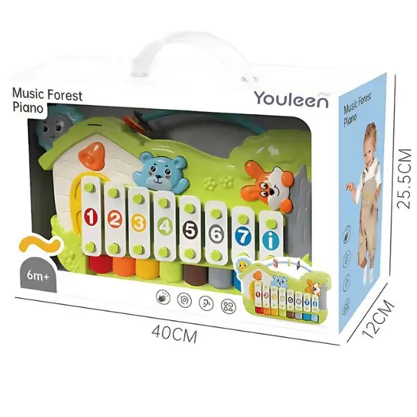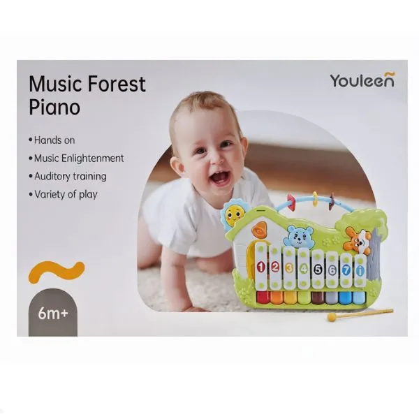 Youleen Music Forest Piano Baby Toy is a fun and educational musical learning toy designed to introduce babies and toddlers to sounds, rhythm, and early music exploration. Created for children aged 6 months and above, this interactive baby keyboard features colorful light-up keys, cheerful melodies, and engaging sound effects that encourage sensory development and creative play. Each press of a key activates music and lights, helping babies understand cause-and-effect while improving hand coordination and fine motor skills. With its forest-themed design and child-friendly size, this musical toy keeps little learners entertained while supporting early cognitive and auditory development. Perfect for home playtime, early education activities, or as a thoughtful gift for growing toddlers.