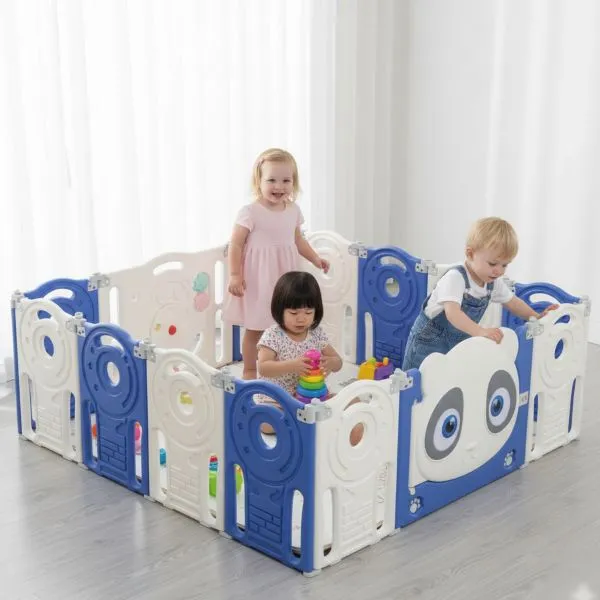 • Playful Theme: Adorable panda-themed panels in blue and white colors create a cheerful, engaging environment for children.