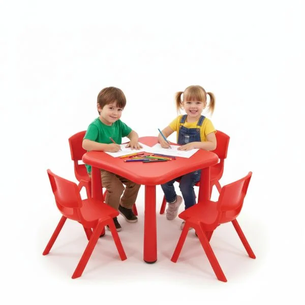AL ARQAM Red Plastic Square Table & Chair Set for Kindergarten - Children's Study & Writing Station, 62x62x52cm