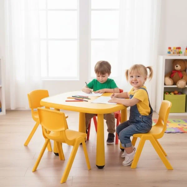 AL ARQAM Yellow Plastic Square Table & Chair Set for Kindergarten - Children's Study & Writing Station, 62x62x52cm