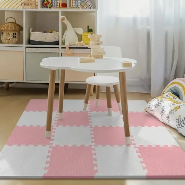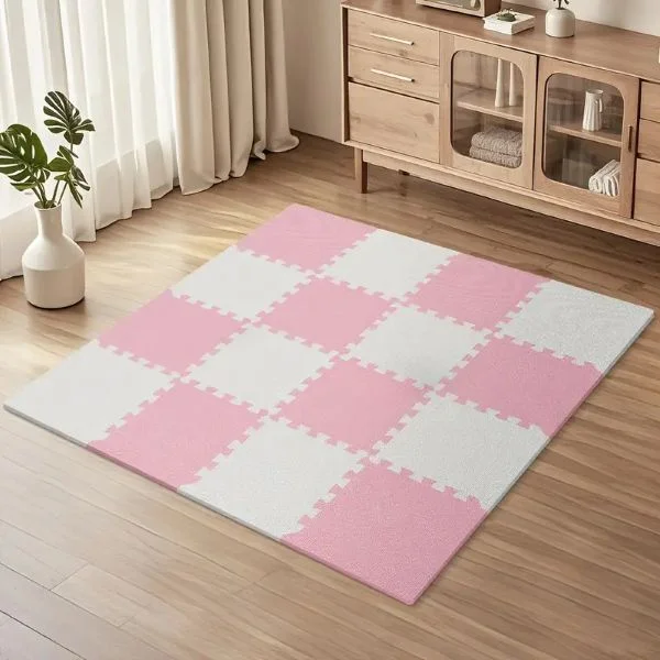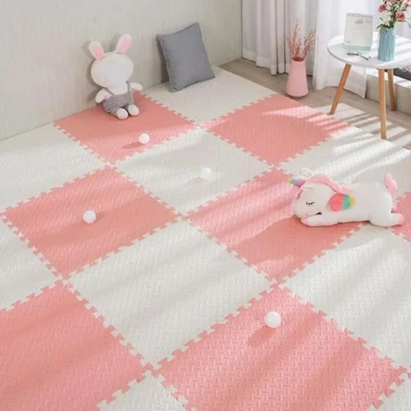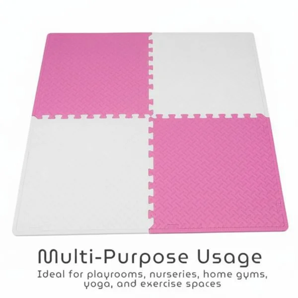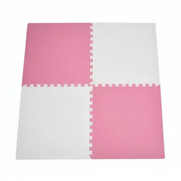 AL ARQAM 60x60cm EVA Rubber Puzzle Mat Set of 4 – Fun, Durable & Educational Playmat for Kindergarten, Yoga Room, Bedroom & Living Room – Pink & White