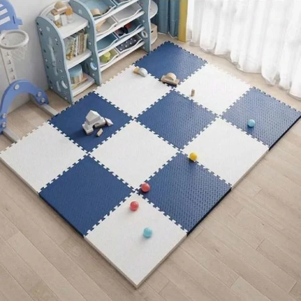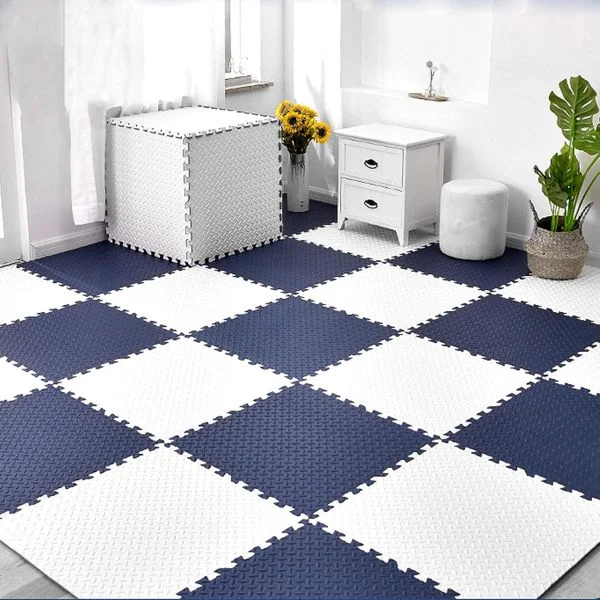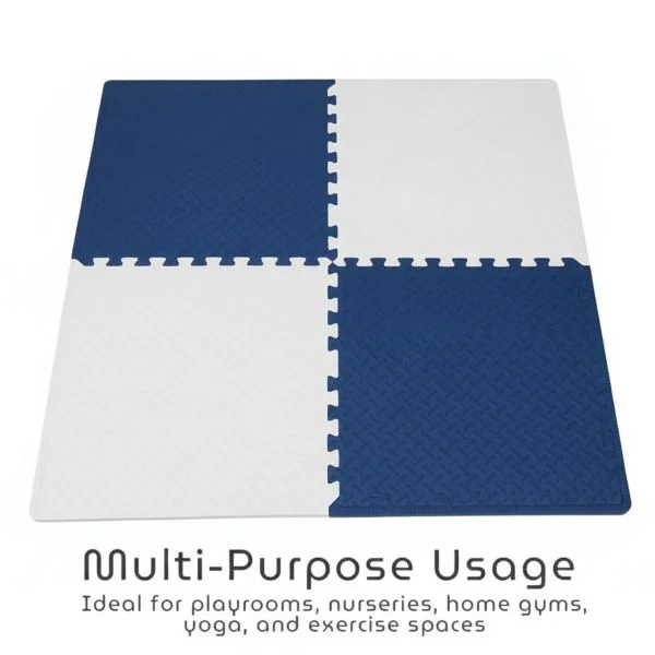 AL ARQAM 60x60cm EVA Rubber Puzzle Mat Set of 4 – Fun, Durable & Educational Playmat for Kindergarten, Yoga Room, Bedroom & Living Room – Blue & White