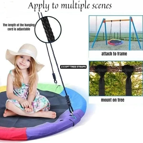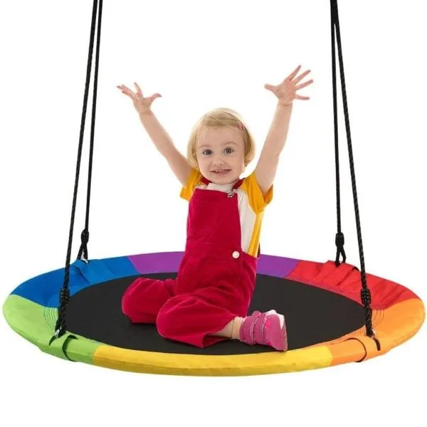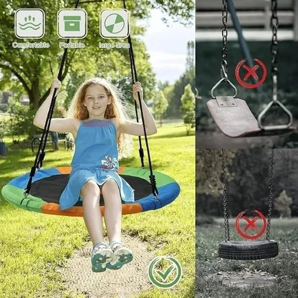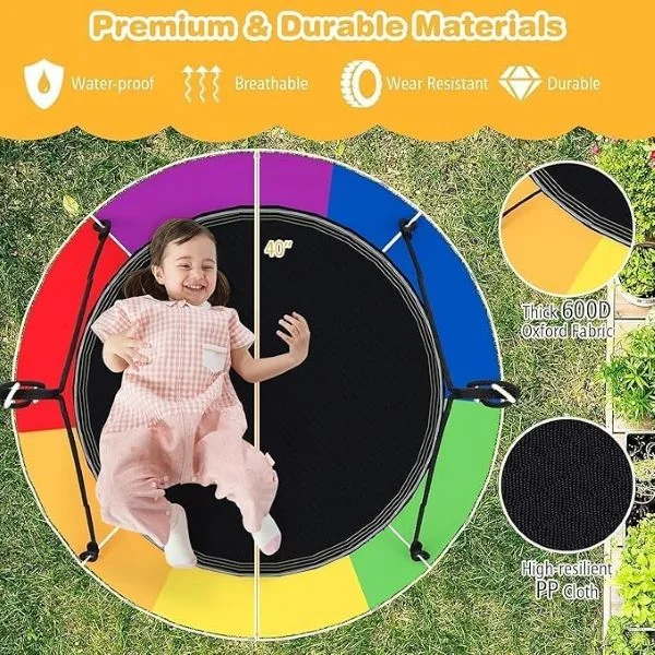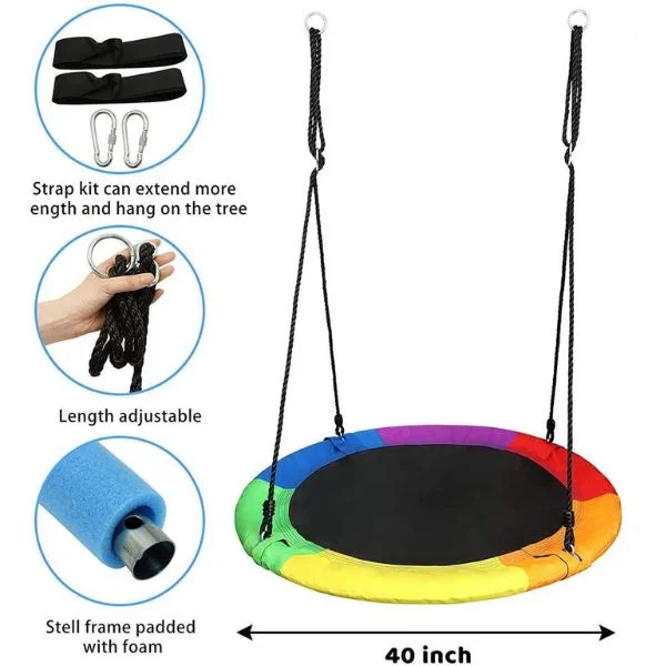AL ARQAM 40" Round Saucer Tree Swing – Heavy Duty Colorful Round Swing for Kids & Adults, Sturdy Steel Frame for Outdoor Hanging, Ideal for Backyard & Family Fun