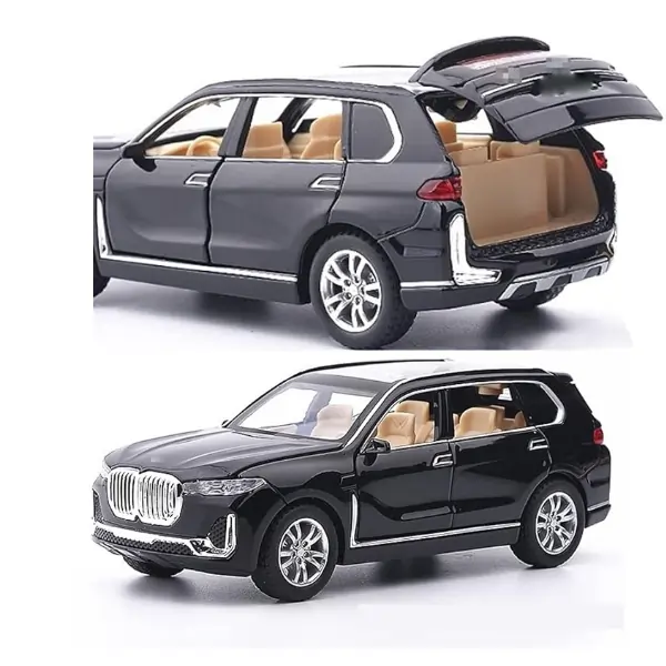 Bring premium style and realistic detailing to playtime with the AL ARQAM 1:32 Diecast BMW X7 Off-Road Simulation Model. Crafted from high-quality alloy metal, this beautiful black BMW X7 replica combines luxury design with rugged off-road styling, making it a standout toy for kids and a must-have collectible for car enthusiasts. Equipped with smooth pull-back action, realistic body lines, rubber tires, opening doors (depending on variant), and detailed interiors, it delivers an authentic miniature SUV experience. Perfect for display, imaginative play, or gifting, this diecast model blends durability with elegance.