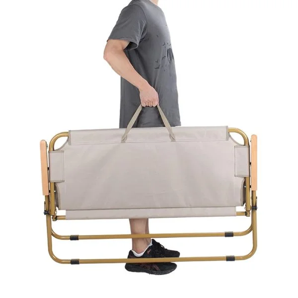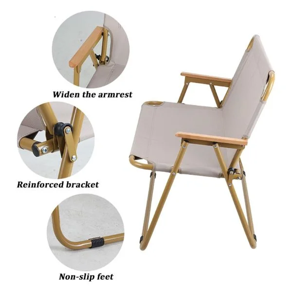 Built with a heavy-duty steel frame, this camping sofa provides reliable strength and durability for outdoor use. The wooden armrests add a premium touch while enhancing comfort, making it ideal for long sitting sessions. The folding design allows for easy transport, quick setup, and compact storage.