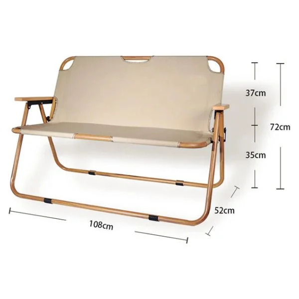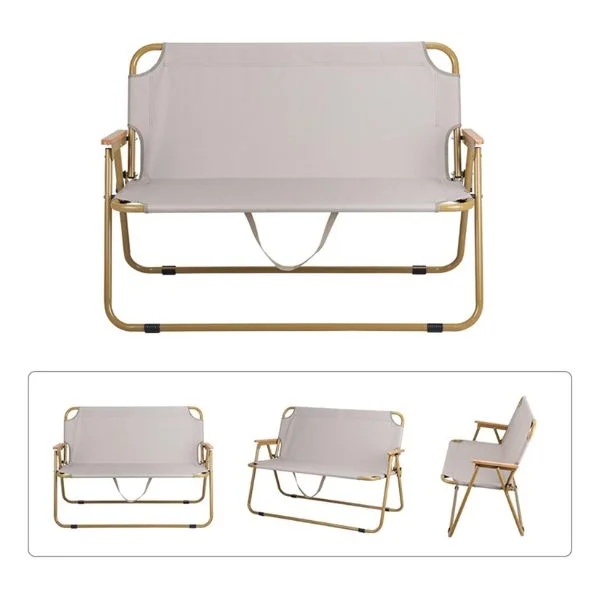Finished in an elegant beige color, this double camping chair blends seamlessly into outdoor environments while offering a cozy and practical seating solution for couples, families, or friends.