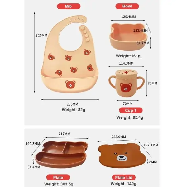 The ALGO 7 PCS Bear Face Food Plate Set is a playful and practical feeding solution designed to make mealtimes enjoyable for toddlers. Featuring a cute bear face design, this set encourages children to eat independently while turning feeding time into a fun learning experience. The set includes plates, cups, and spoons made from BPA-free, child-safe materials, ensuring safe daily use. Designed to support early self-feeding skills, it helps develop hand-eye coordination and confidence while eating at home or daycare.