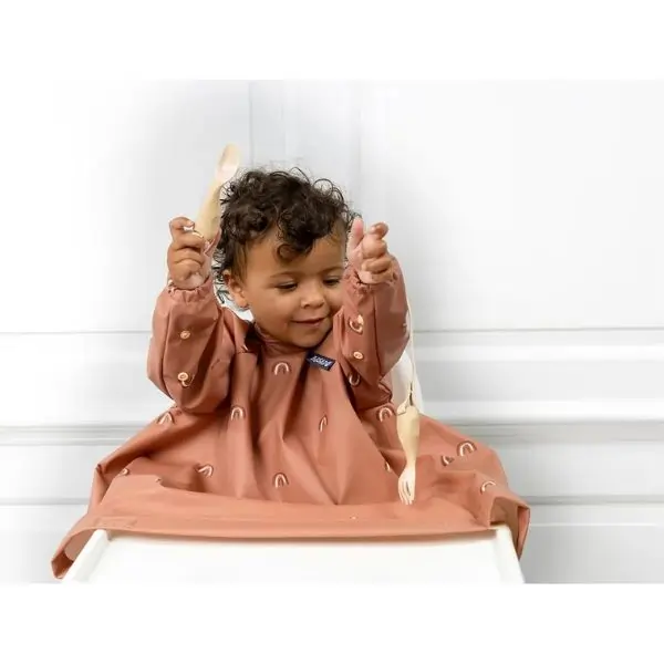 Cleaning: Wipe clean / machine washableBibado Chasing Rainbows bib keeps mealtime mess-free. Waterproof, soft fabric, long sleeves for 6M–3Y toddlers. Fun design. Shop at YallaBuyit