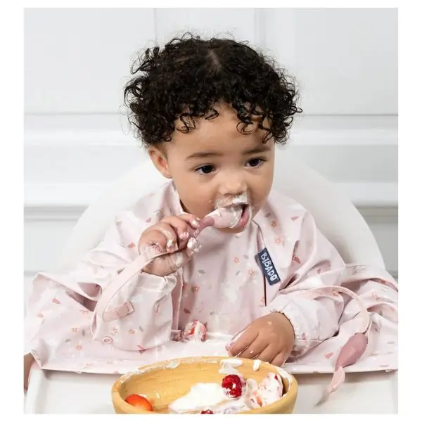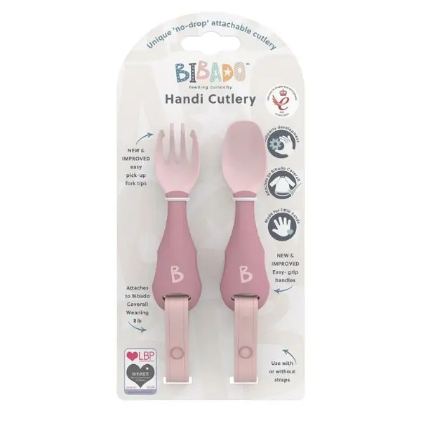 Encourage your baby’s independence at mealtime with the Bibado Handi Cutlery Fork & Spoon Set in Mist. Thoughtfully designed with an ergonomic grip for tiny hands, this set promotes safe and confident self-feeding from 6 months onward. The no-drop strap keeps the cutlery securely attached to Bibado Coverall Weaning Bibs, helping reduce mess and frustration. Made from food-safe, BPA-free materials, each 10 cm utensil is durable, easy to clean, and gentle on gums — the perfect introduction to mealtime learning.