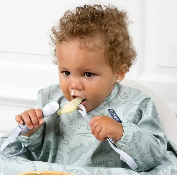 No-Drop Strap: Keeps cutlery attached to the bib, preventing mess and loss.