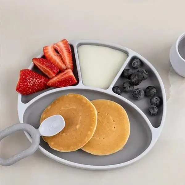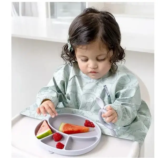 The Bibado Silicone Suction Divider Plate in Mist is perfect for toddlers learning to eat independently. Its secure suction base keeps the plate stable, reducing spills and mess. With 4 handy sections, it makes portioning food simple and encourages healthy eating habits. Crafted from BPA-free silicone, it’s soft, safe, and easy to clean. Suitable for babies aged 6 months to 3 years, ideal for everyday mealtime.