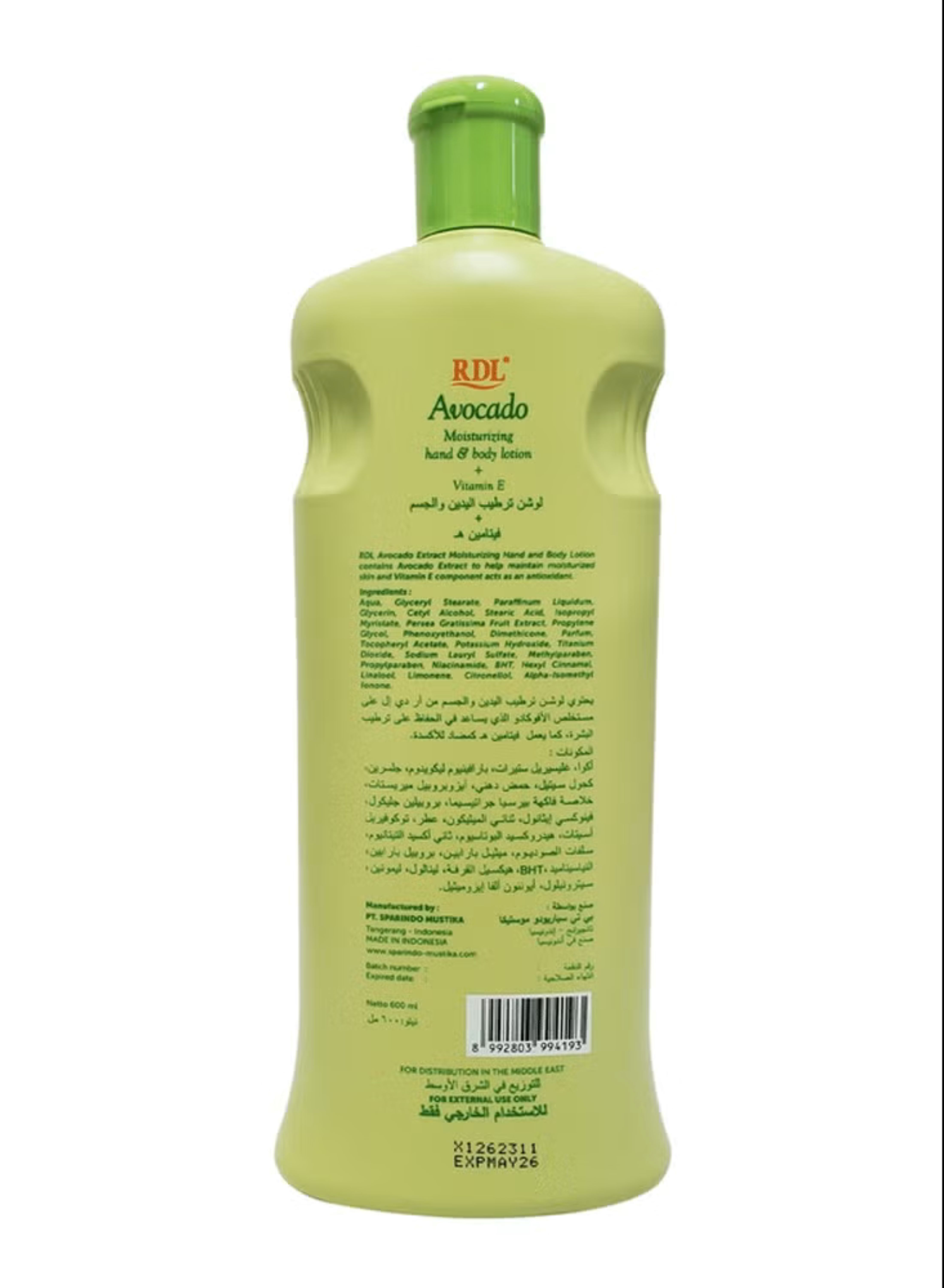 RDL Body Lotion enriched with natural Avocado Extract deeply nourishes and hydrates dry and sensitive skin. This vitamin-enriched, fast-absorbing lotion provides long-lasting moisture, leaving skin soft, smooth, and revitalized. Perfect for daily use, each carton includes 12 bottles of 600ml for home or bulk use.