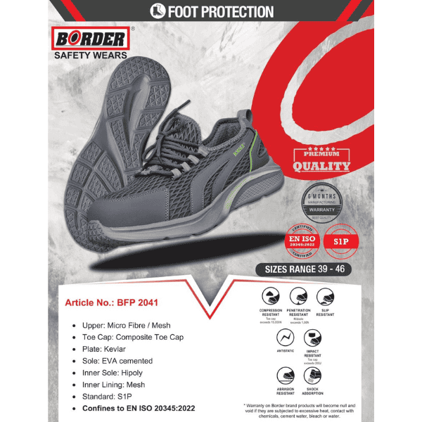 BSW BORDER Safety Shoe Grey Composite Toe Kevlar Midsole