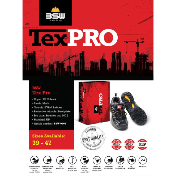 Safety Features: Steel toe cap 200J, Steel plate protective midsole, Compression and Penetration Resistant, Heat Resistant up to 130∘C, Oil Resistant, Anti-Static
