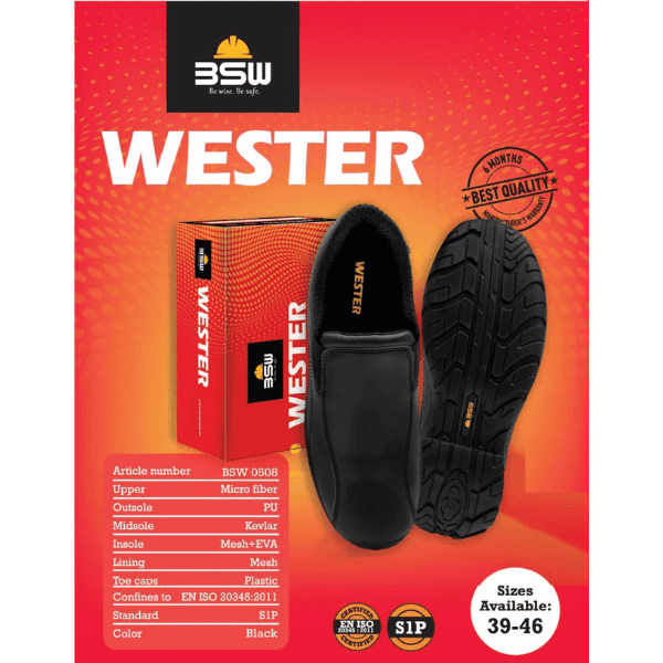 BSW WESTER Slip On Safety Shoe Black Microfiber