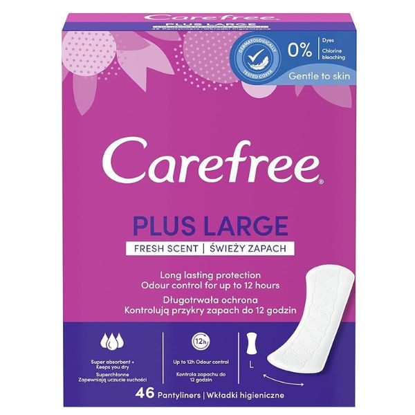 Stay fresh, confident, and comfortable every day with Carefree Panty Liners Plus Large Fresh Scent 48PCS. Designed for extended coverage, these large panty liners are perfect for daily freshness, light discharge, spotting days, and added protection between periods. The Fresh Scent technology helps neutralize odor, keeping you clean and comfortable throughout the day. The soft, breathable material adapts to your body’s natural movements, while the secure, flexible design ensures all-day comfort without irritation. Thin, discreet, and dermatologically tested, Carefree liners offer reliable protection ideal for everyday hygiene. Packed in 6BX/CTN, they are an excellent choice for supermarkets, pharmacies, retail stores, hotels, and wholesale distributors.