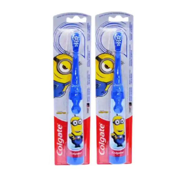 Make brushing time exciting with the Colgate Kids Minions Battery Toothbrush, specially designed for children aged 3+ years. Featuring fun and colorful Minions characters, this toothbrush encourages kids to enjoy brushing while delivering superior cleaning performance. The soft vibrating action helps remove plaque more effectively than a manual brush, while the extra soft bristles ensure gentle care for young teeth and gums. Its ergonomic handle is designed for small hands, helping children brush comfortably and confidently. Supplied in 12ST/CTN, this toothbrush is perfect for supermarkets, pharmacies, pediatric clinics, nurseries, and wholesale buyers.