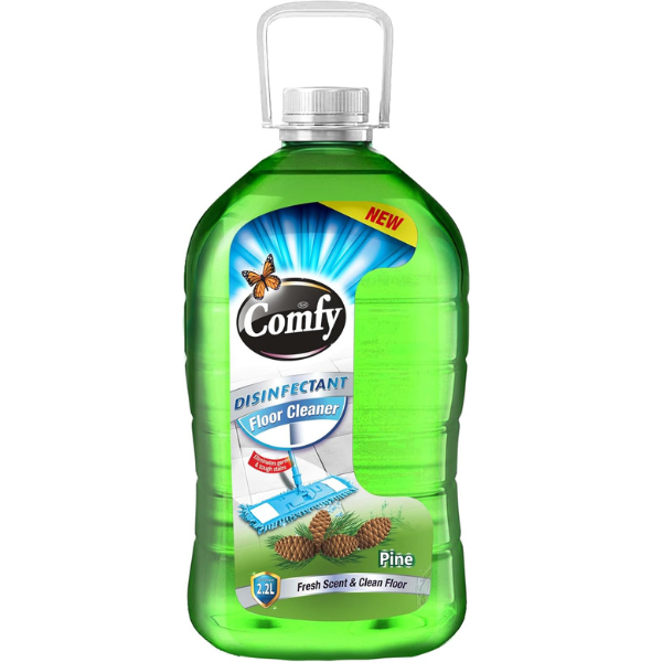 Keep your floors sparkling clean with COMFY Floor Cleaner Pine Scent 2.2L, a powerful disinfectant that eliminates dirt, grime, and odors in one easy step. Its long-lasting pine fragrance refreshes your home or office, leaving surfaces hygienic and pleasantly scented. Perfect for all floor types, this cleaner comes in an 8-piece carton, making it ideal for retail, wholesale, or office use.