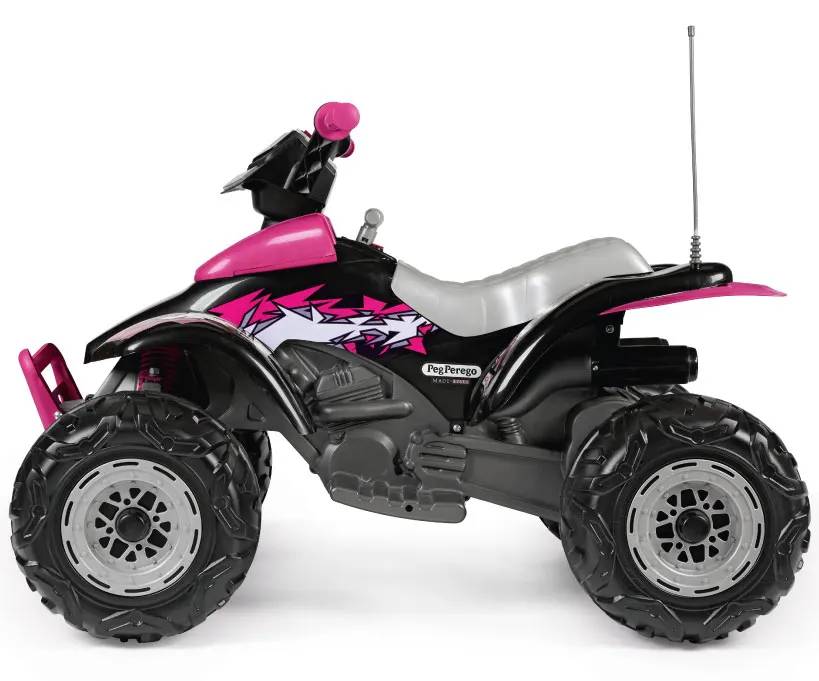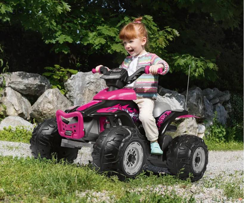 The Peg Perego Corral T-Rex 330W Electric Quad in pink is a gutsy yet glamorous ride for girls 3+, blending Italian style with off-road fun. Powered by a 12V/8Ah battery and 330W dual motors, it conquers hills and uneven UAE terrains with pedal acceleration (speeds: 3.7 & 6.7 km/h, reverse). Rubberized wheels, LED lights, sounds, horn, and MP3/USB connectivity spark joy, while EN71/CE-certified safety and parental speed lock ensure peace of mind (max load: 40kg). At 15.3 kg (99.5x64.5x65.5 cm), it’s perfect for family adventures or bulk orders. Backed by a 2-year warranty, it ships in 2 days via YallaBuyIt.ae