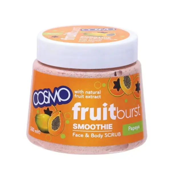 Reveal fresh, glowing skin with the Cosmo Natural Fruit Burst Smoothie Face & Body Scrub Papaya, a rich exfoliating formula infused with natural papaya extracts. Known for its brightening and skin-renewing properties, papaya helps gently remove dead skin cells, unclog pores, and smooth uneven texture for a polished and refreshed look.