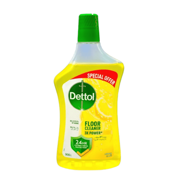 Achieve spotless, hygienic floors with Dettol Power Antibacterial Floor Cleaner Lemon 900ml. Formulated with Dettol’s trusted germ-protection technology, this cleaner eliminates 99.9% of bacteria and germs, ensuring a safe and sanitized environment for your home or workplace.Its powerful stain-removal formula cuts through dirt, grease, and tough marks while the fresh lemon fragrance leaves your floors smelling clean, bright, and revitalized. Perfect for daily cleaning on tiles, ceramic, granite, marble, laminate, vinyl, and other washable surfaces. Supplied in 2 bottles per set × 6 sets (12PCS/CTN), this product is ideal for supermarkets, hotels, janitorial suppliers, office buildings, and bulk buyers.