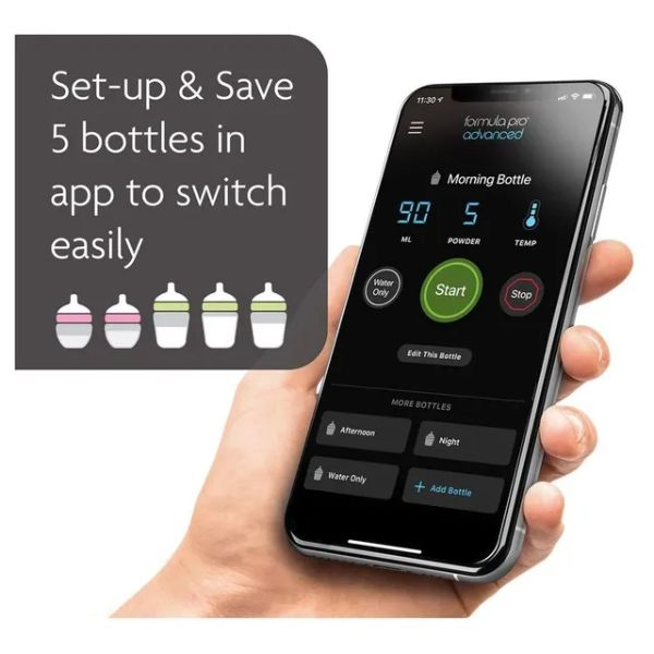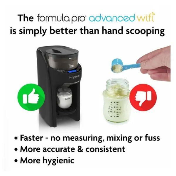 Mix warm formula bottles effortlessly from your phone with the Baby Brezza Formula Pro Advanced WiFi in black—the automatic dispenser that blends powder precisely and dispenses 2-10oz in 1oz increments at 3 temperatures (room, body, warmer). Use the free app for remote control, saved settings, and alerts, even if unplugged. Works with all formula brands (hypoallergenic too) and bottle sizes, with water-only mode. BPA-free, EN certified for safety, and compact (27.94x17.78x35.56 cm, 4.17kg). Ideal for UAE nurseries or travel. Ships in 2 days via YallaBuyIt.ae. Key Specifications: