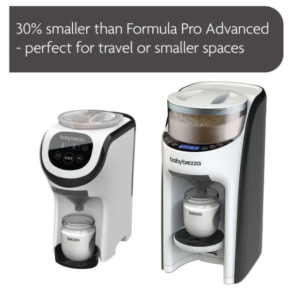 Make perfect bottles on the go with the Baby Brezza Formula Pro Mini in white—a portable, compact mixer (30% smaller than the Advanced) that fits small spaces or travel bags. Instantly dispenses 2-10oz of body-temperature (98.6°F) formula in seconds, mixing to ideal consistency without measuring or fuss. Works with all formula brands (including hypoallergenic) and bottle sizes, using the patented airtight powder container for hygiene. BPA-free, EN certified for safety, with easy-clean funnel and 1.7L water tank. Ideal for UAE trips or nurseries. Ships in 2 days via YallaBuyIt.ae. Key Specifications: