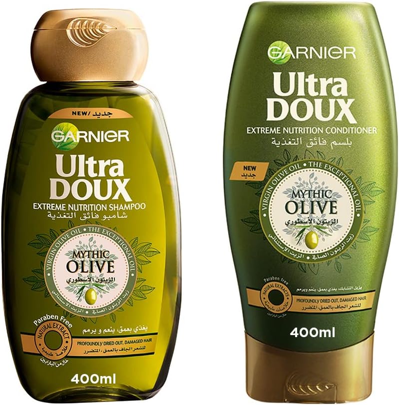 Give your hair intense nourishment with Garnier Ultra Doux Mythic Olive Shampoo 400ml, specially formulated for very dry, rough, and damaged hair. Enriched with Virgin Olive Oil, a natural ingredient known for its hydrating and repairing properties, this shampoo deeply nourishes each strand from root to tip. The creamy, rich texture cleanses gently without stripping moisture, leaving your hair feeling soft, smooth, shiny, and manageable. Perfect for restoring life to dull, dry hair, it helps reduce frizz and enhances natural softness with every wash. Packed in 6SET/CTN, this SKU is ideal for supermarkets, salons, hotels, and wholesale supply.