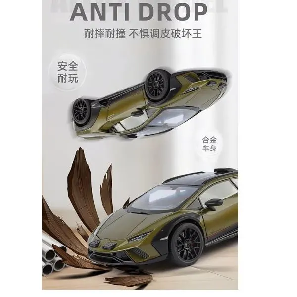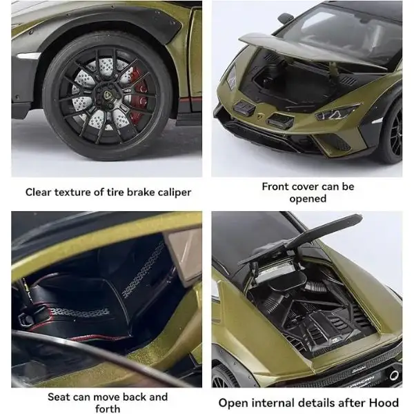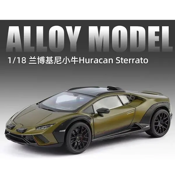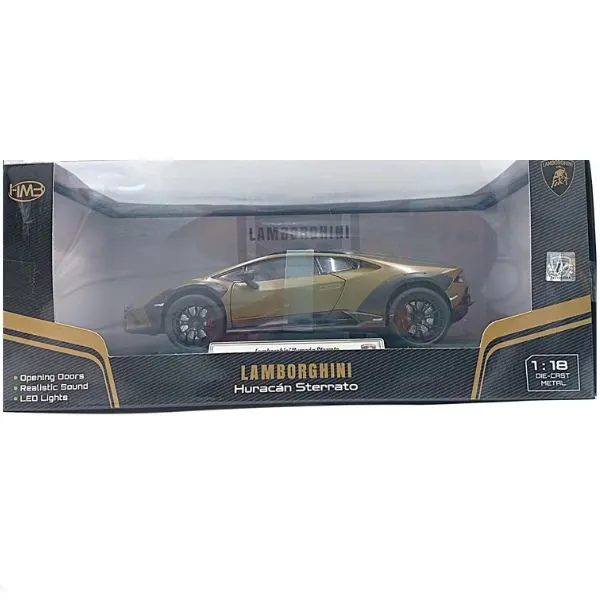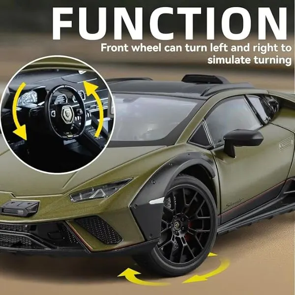 Lamborghini Official Licensed Huracán Sterrato 1:18 Diecast Model Car (Green) is a premium collectible replica inspired by Lamborghini’s bold off-road supercar concept. Crafted in a detailed 1:18 scale, this diecast model captures the aggressive styling, raised suspension design, and adventurous character of the Huracán Sterrato. The striking green finish enhances the supercar’s sporty and rugged appeal, making it a standout display piece for collectors and automotive enthusiasts. Constructed with durable alloy metal, the model features opening doors, realistic sound effects, and LED light functions, bringing the supercar to life with interactive features. With a finely detailed interior, authentic body proportions, and smooth rolling wheels, this diecast model delivers both collector-quality craftsmanship and engaging play value. Perfect for collectors, display cabinets, office décor, or as a premium gift for kids and adults who admire Lamborghini’s high-performance supercars.