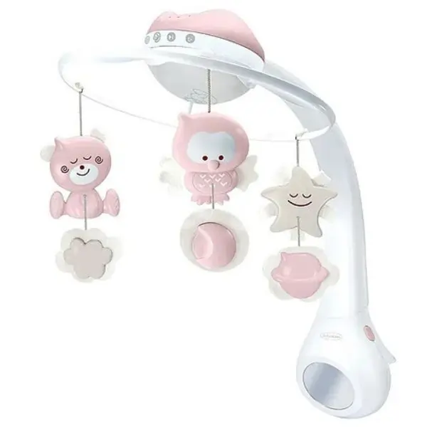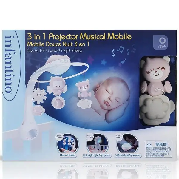 The Infantino 3-in-1 Musical Cot Mobile with Projector combines soothing music, gentle nature sounds, and a soft light projector to create a calming environment for your baby. Designed to stimulate visual tracking and enhance sensory and motor skills, this cot mobile grows with your infant from birth. Includes 6 melodies, 4 nature sounds, and 3 hanging toys to keep your baby engaged and entertained.