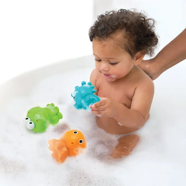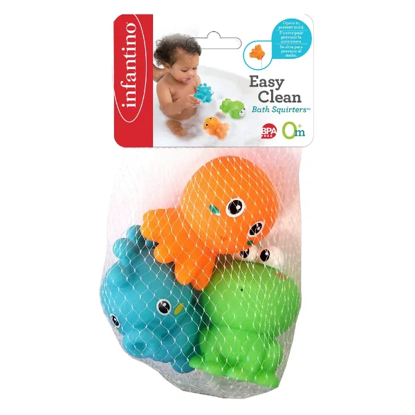 Splash into fun with the Infantino Easy Clean Bath Squirters—3 soft, floating sea animal toys (whale, octopus, fish) that squirt water for 6 months+. Fill and squeeze to promote hand-eye coordination and sensory play. Made from BPA-free, phthalate-free rubber for safety and teething. Easy to clean and dishwasher-safe. EN certified for peace of mind. Ideal for UAE bath time adventures. Ships in 2 days via YallaBuyIt.ae.