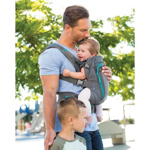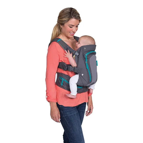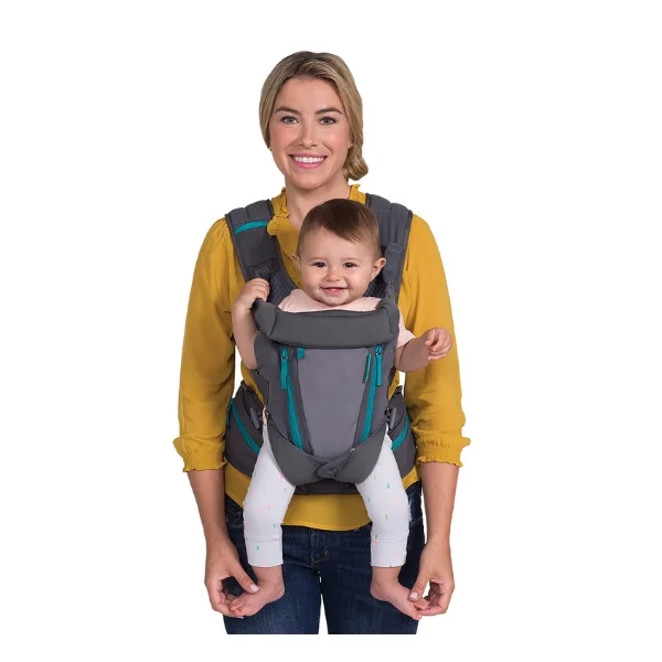Carry baby close in comfort with the Infantino Ergonomic Multi-Pocket Carrier in Grey—designed for 0 months+ (3.6–14.5 kg) with 3 positions: front-inward, front-outward, and back carry. Breathable internal mesh panel keeps baby cool in UAE heat; padded shoulder straps and wide waist belt (66–132 cm) distribute weight evenly. Three pockets store essentials. Machine-washable, folds compact. EN certified & hip-healthy. Ships in 2 days via YallaBuyIt.ae.